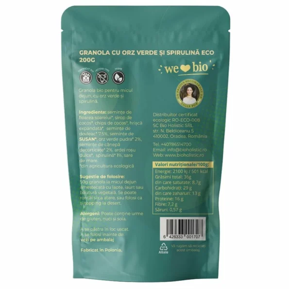 Etichete: granola bio, superalimente, orz verde bio, spirulina bio, mic dejun nutritiv, cereale integrale