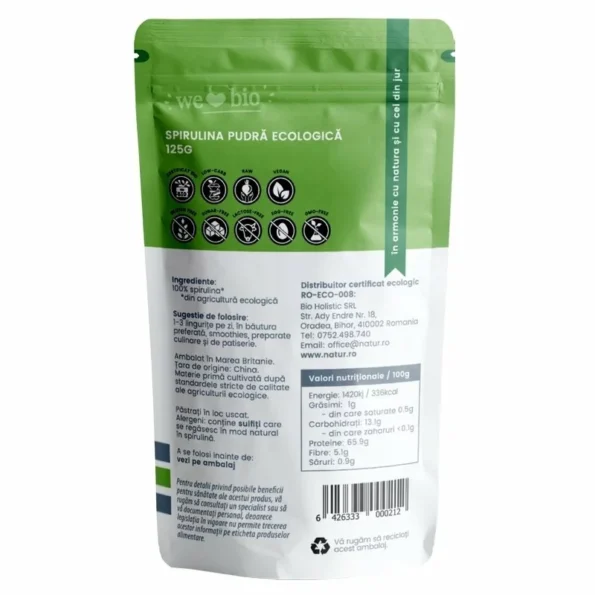 Caracteristici și detalii spirulina pudră raw Bio Obio