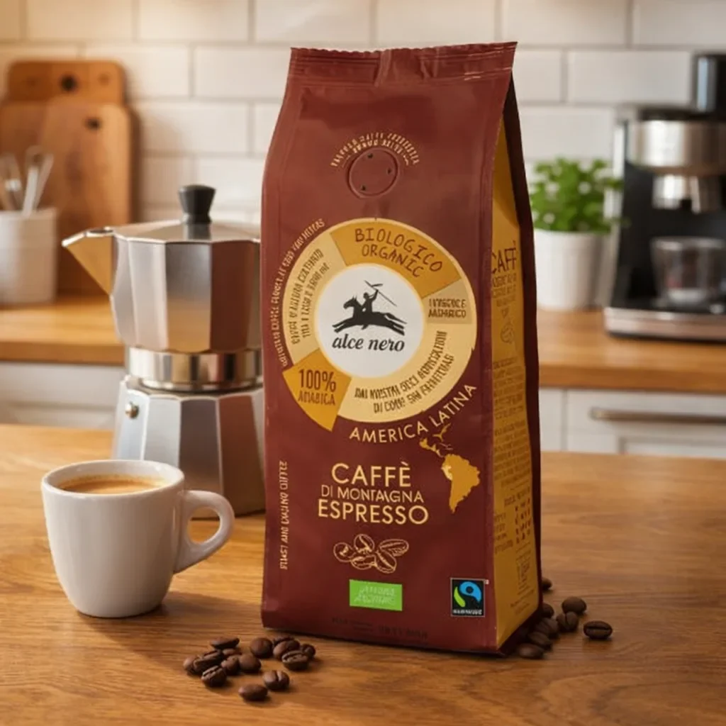 Cafeaua arabica espresso Alce Nero combină calitatea boabelor de altitudine cu procesare responsabilă Fair Trade. Profilul aromatic echilibrat provine din selecția boabelor mature cultivate în umbra arborilor la 1250-1800 metri.