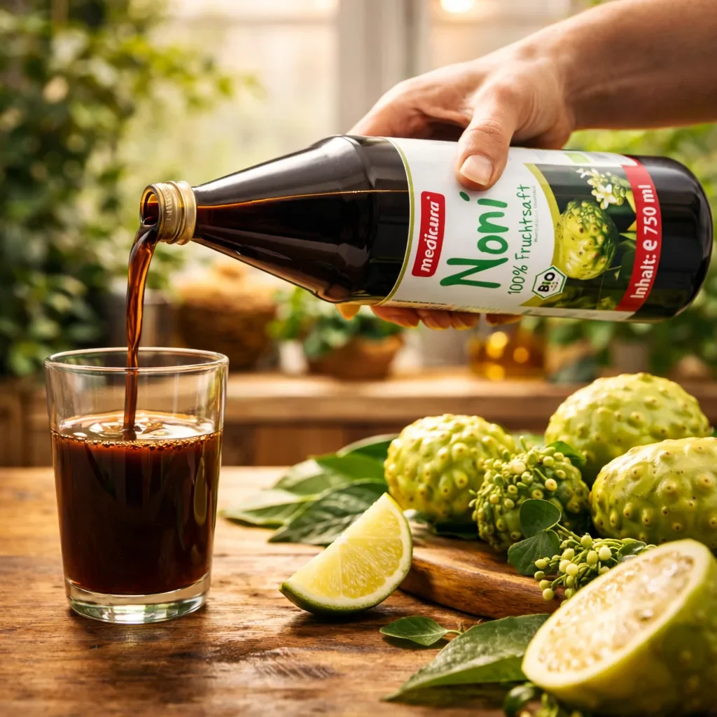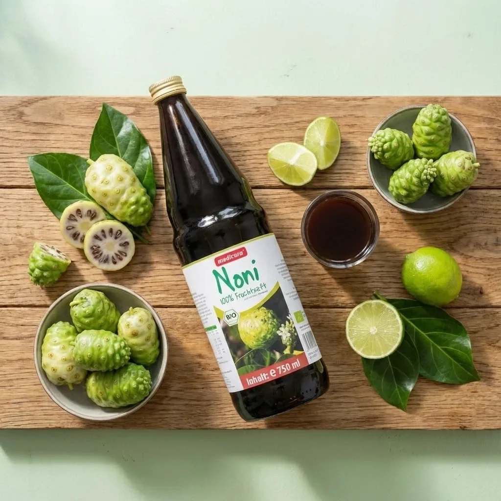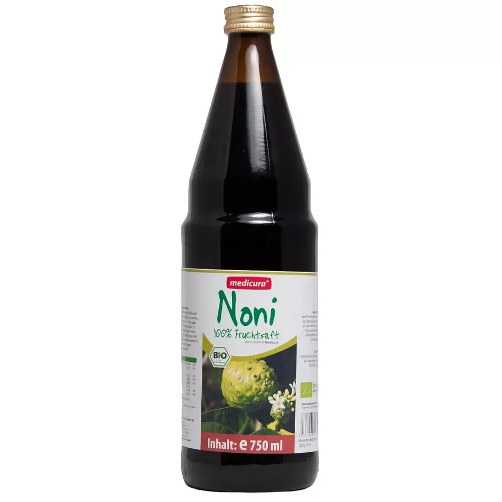 Sucul de noni bio NFC (Not From Concentrate) Medicura este obținut prin presare directă a fructelor Morinda citrifolia din culturi ecologice certificate. Procesul de fabricație NFC păstrează concentrația naturală de nutrienți prin evitarea concentrării și rediluării. Produsul conține 100% suc pur de noni fără adaos de apă, zahăr sau conservanți artificiali.
