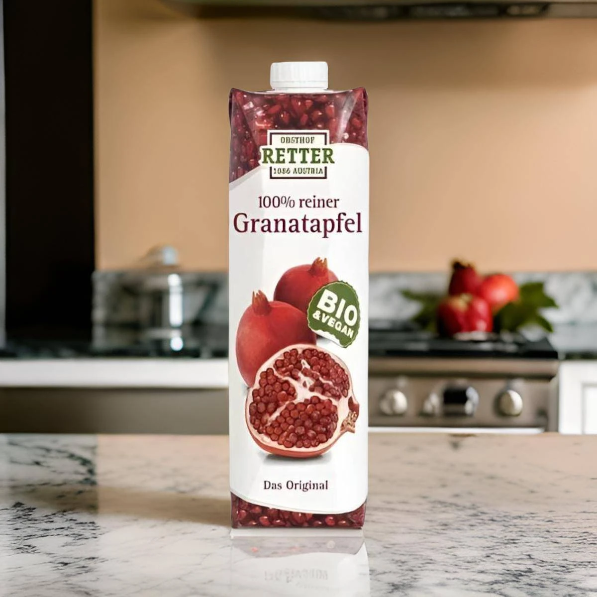 Etichete: suc bio, rodie, antioxidanți naturali, băutură ecologică, concentrat fructe, Retter