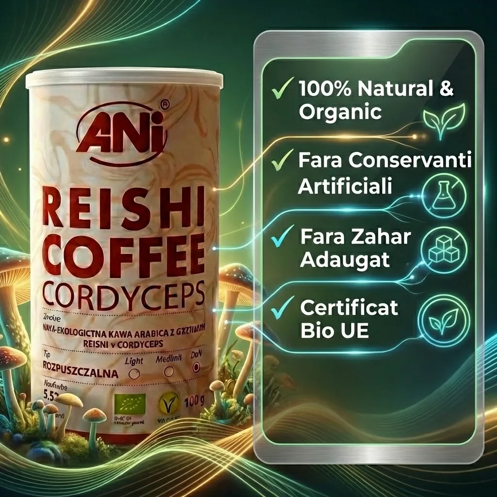 Etichete:cafea cu reishi, cordyceps bio, cafea arabica instant, supliment energie naturală, imunitate ciuperci medicinale, cafea vegană, băutură adaptogenă.