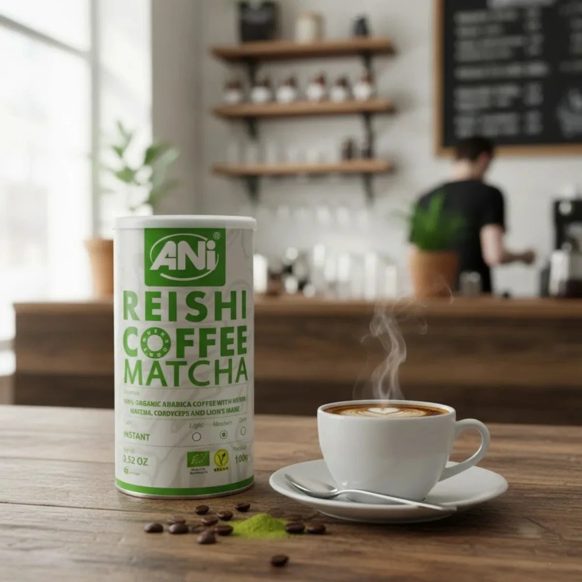 Etichete:cafea instant cu adaptogeni, reishi și matcha bio, băutură energizantă naturală, supliment cu ciuperci medicinale, cafea arabica organică, matcha japonez premium