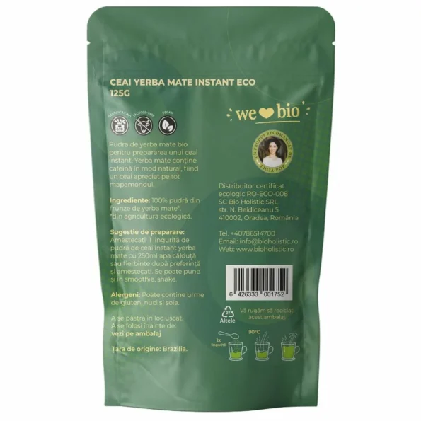 | Ingrediente | 100% pudră din frunze de yerba mate din agricultură ecologică |