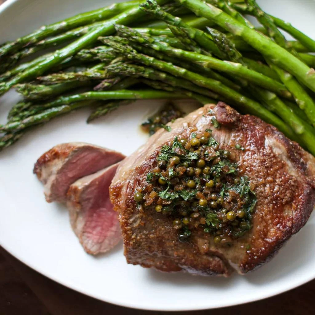 Zdrobește ușor boabele de piper verde bio Cook înainte să le presari peste friptură pentru o explozie de aromă în fiecare înghițitură.