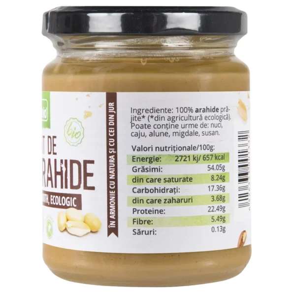 Produsul se evidențiază prin textura sa deosebit de fină și uniformă, care îl face extrem de ușor de întins și utilizat în diverse preparate. Datorită procesului atent controlat de producție, untul își păstrează atât aroma intensă caracteristică arahidelor, cât și valoarea sa nutritivă ridicată. Cu un conținut bogat în proteine vegetale și grăsimi sănătoase, acest unt de arahide bio devine un aliment valoros pentru persoanele care urmează un stil de viață activ.