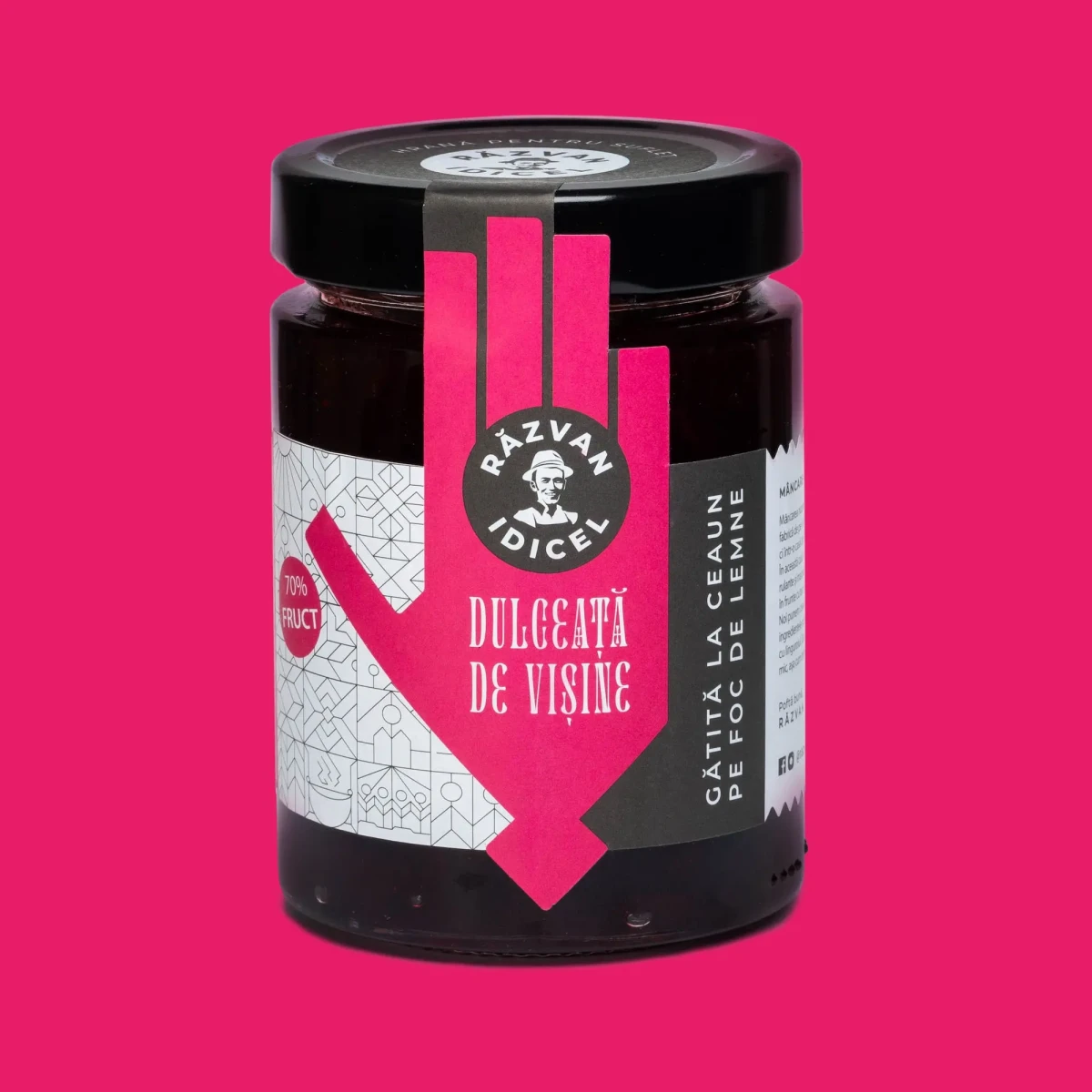 Dulceața de visine Razvan se remarcă prin conținutul său bogat de fructe – 70% visine atent selecționate, completate de o cantitate echilibrată de zahăr care păstrează și potențează gustul natural al visinelor. Preparată la ceaun pe foc de lemne în satul Idicel Pădure din județul Mureș, această delicatesă păstrează vie tradiția preparării artizanale a dulcețurilor românești.