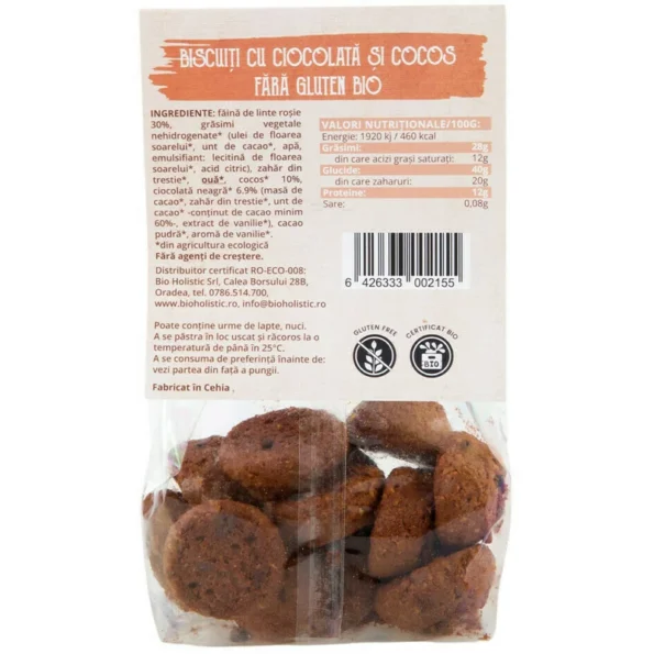 Etichete: biscuiți fără gluten, ciocolată și cocos, snack bio, făină linte roșie, gustare ecologică, obio