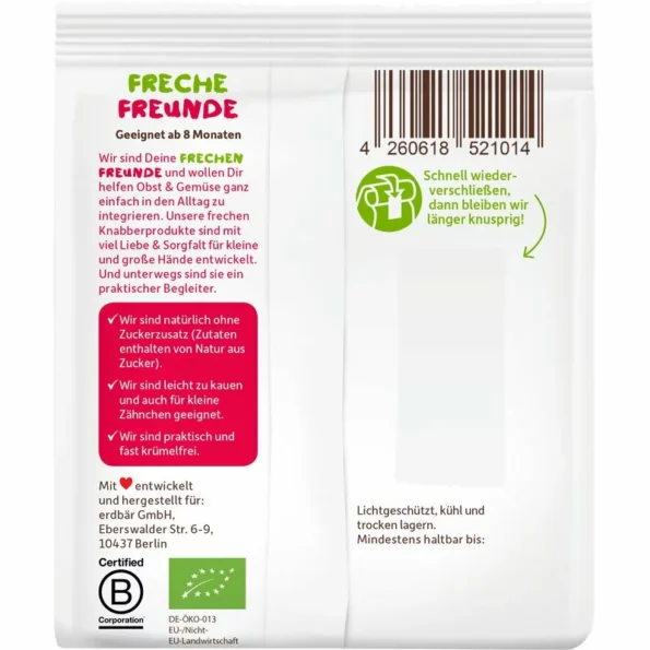 Biscuiții din spelta cu căpșuni bio Erdbar sunt foarte versatili când vine vorba de momentul consumului. Poți să-i oferi copilului tău ca gustare între mese principale, când energia scade și ai nevoie de ceva rapid care să-l țină până la masa următoare. Sunt alegerea potrivită pentru momentele în care ești pe fugă și ai nevoie de o opțiune portabilă și curată, care nu face firimituri peste tot.