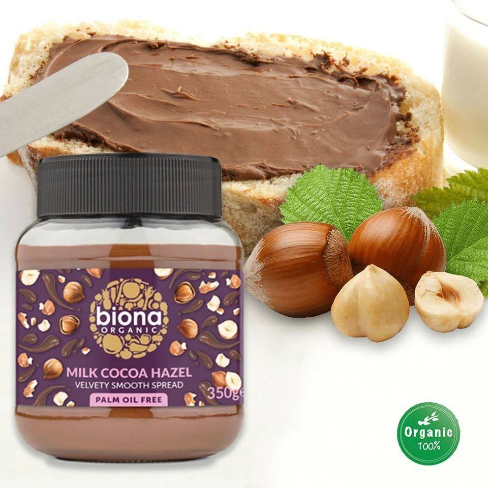 Crema tartinabilă cu alune și ciocolată Biona aduce împreună gustul bogat al alunelor de pădure proaspăt măcinate cu aroma caldă a ciocolatei cu lapte. Cu 10% alune de pădure și 5% cacao, această cremă bio te va cuceri prin textura sa cremoasă și gustul echilibrat. Nu are conservanți sau arome artificiale – doar ingrediente naturale din agricultură ecologică.
