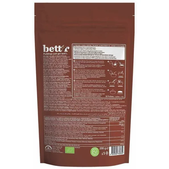 Mix pentru budincă ciocolată, Bio, reducere grăsimi, porumb, Bettr, 200g