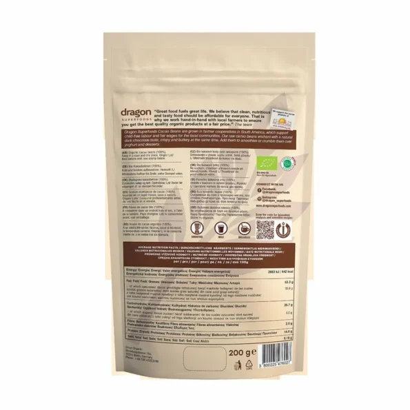 Boabele de cacao crude bio Dragon Superfoods se remarcă prin: