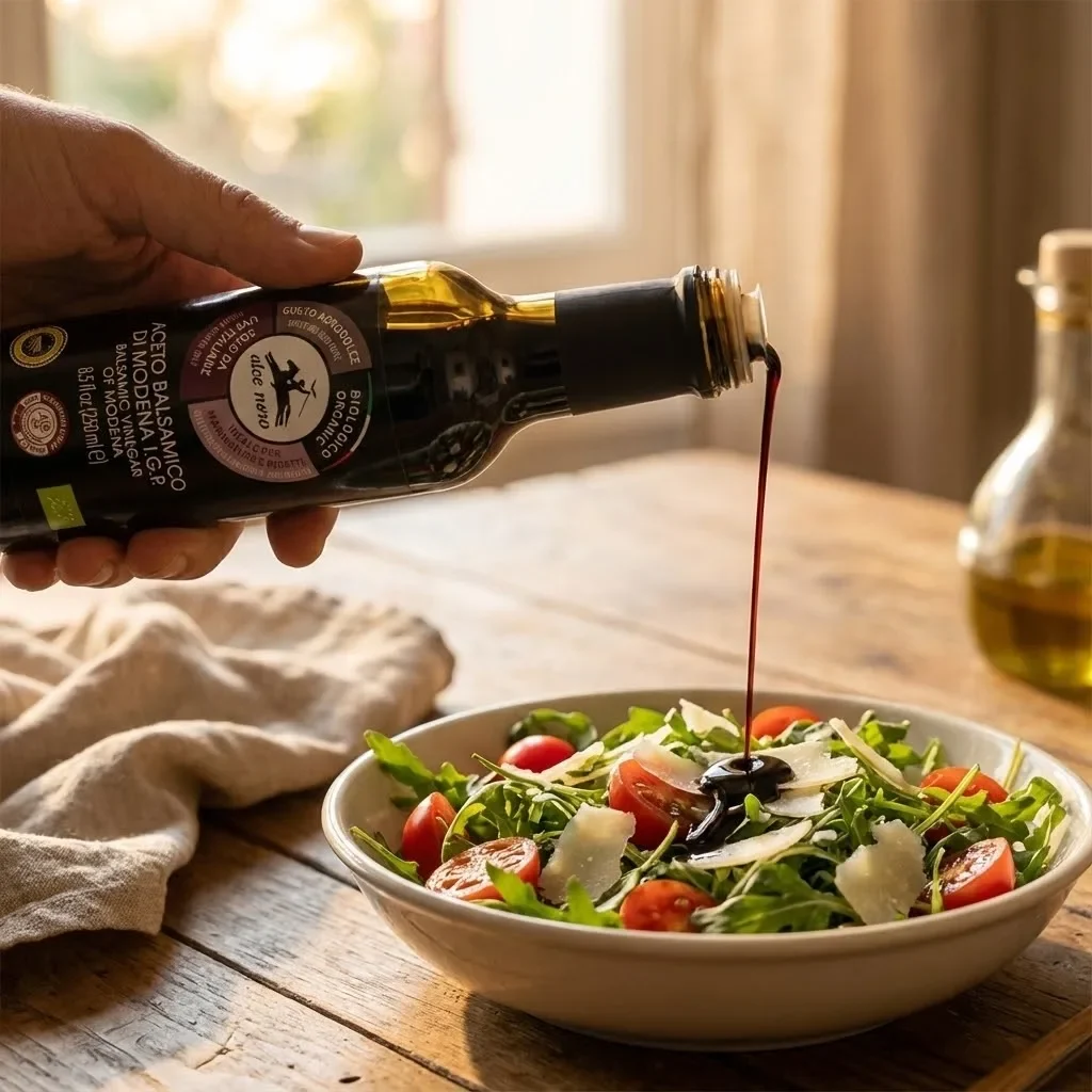 Oțetul balsamic de Modena modulează digestibilitatea proteinelor și carbohidraților în funcție de matricea alimentară, contribuind la optimizarea proceselor digestive. Pentru salate, adaugați câteva picături peste frunzele verzi proaspete sau combinați-l cu ulei de măsline extravirgin pentru un dressing simplu și rafinat în stil mediteranean. Pentru marinare, utilizați-l pentru carne sau legume – aciditatea sa va ajuta la fragedizarea cărnii și va adăuga complexitate aromei finale.