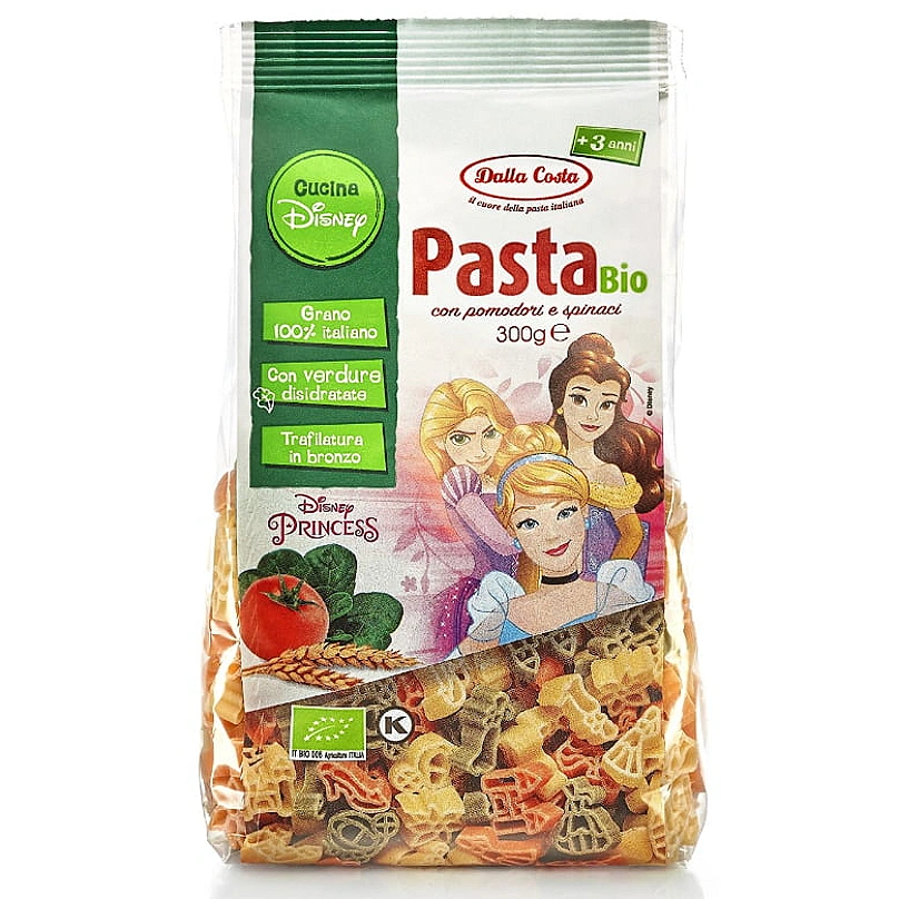 Etichete: paste bio tricolore, paste Disney Princess, paste organice copii, paste grâu dur, paste colorate natural, Dalla Costa bio