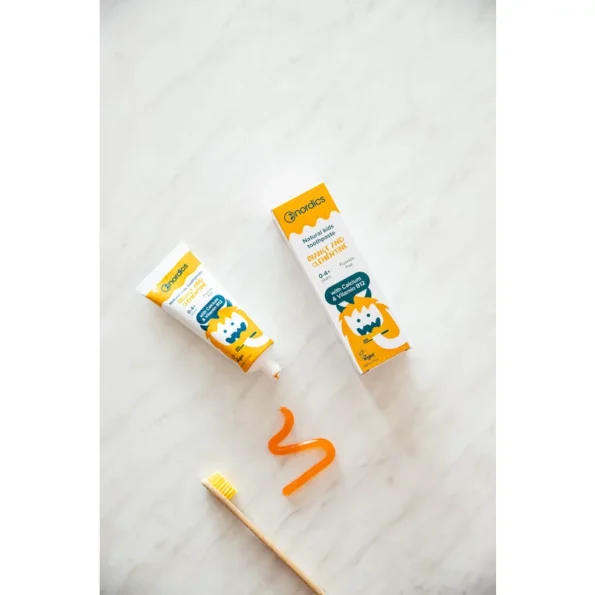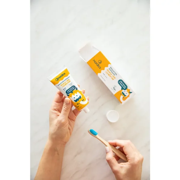 Pasta de dinți cu aromă de citrice Nordics aduce o experiență proaspătă și plăcută în rutina zilnică de îngrijire orală a copiilor. Acest produs stomatologic special conceput pentru cei mici combină ingrediente naturale precum extractul de mușețel și stevia într-o formulă blândă, fără fluor și fără SLS. Aroma delicată de portocale și clementine transformă periajul într-o activitate plăcută, încurajând dezvoltarea unor obiceiuri sănătoase de igienă orală de la vârste fragede.