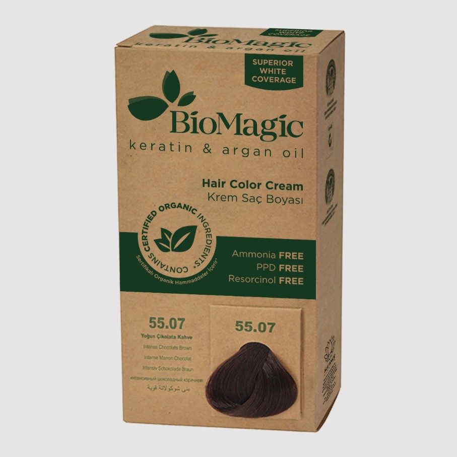 Vopseaua de păr fără amoniac BioMagic 55.07 Intense Chocolate Brown oferă o nuanță bogată de maro ciocolatiu intens, fiind formulată special pentru a colora părul în condiții optime fără a compromite sănătatea firelor. Această formulă eco-friendly asigură o acoperire completă a firelor albe, păstrând în același timp naturalețea și vitalitatea părului dumneavoastră. Datorită absenței amoniacului și înlocuirii substanțelor agresive conform recomandărilor Comitetului Științific pentru Siguranța Consumatorilor (SCCS) al Comisiei Europene, această vopsea reprezintă alegerea inteligentă pentru cei care doresc rezultate remarcabile cu o formulă mai blândă.
