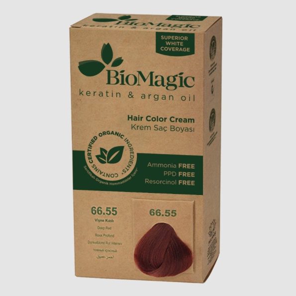 Vopsea de păr fără amoniac roșu BioMagic 66.55 Deep Red este soluția pentru cei care vor să obțină o culoare vibrantă și uniformă fără a compromite sănătatea părului și să elimine definitiv grija deteriorării sau uscării excesive a firelor în urma colorării chimice.