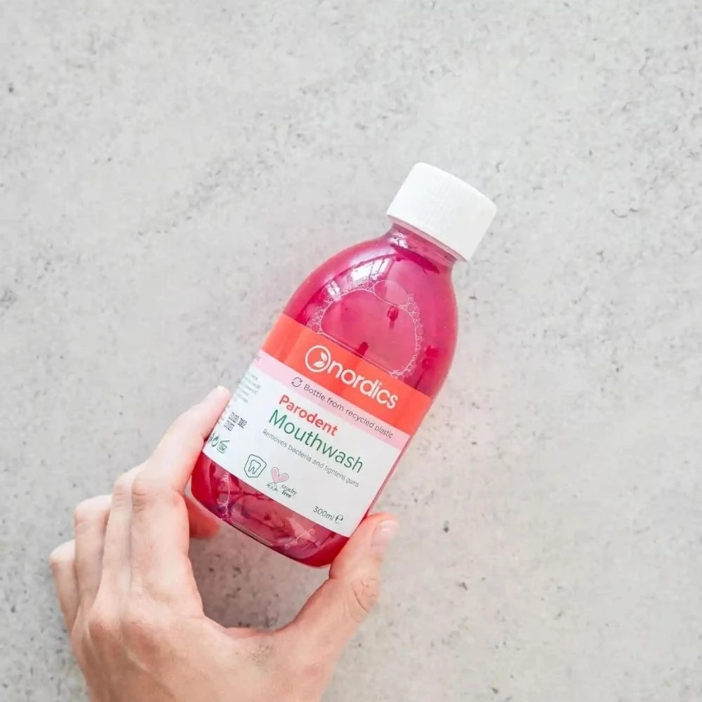 - ECO-FRIENDLY: Ambalata in flacon din plastic reciclat, Apa de gura Parodent Nordics reflecta angajamentul marcii fata de sustenabilitate si protectia mediului.