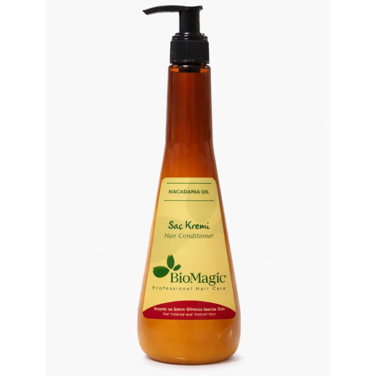Balsam de păr cu ulei de macadamia BioMagic 300 ml, ideal pentru hidratare profundă și regenerare a părului uscat și deteriorat, oferind strălucire și elasticitate.