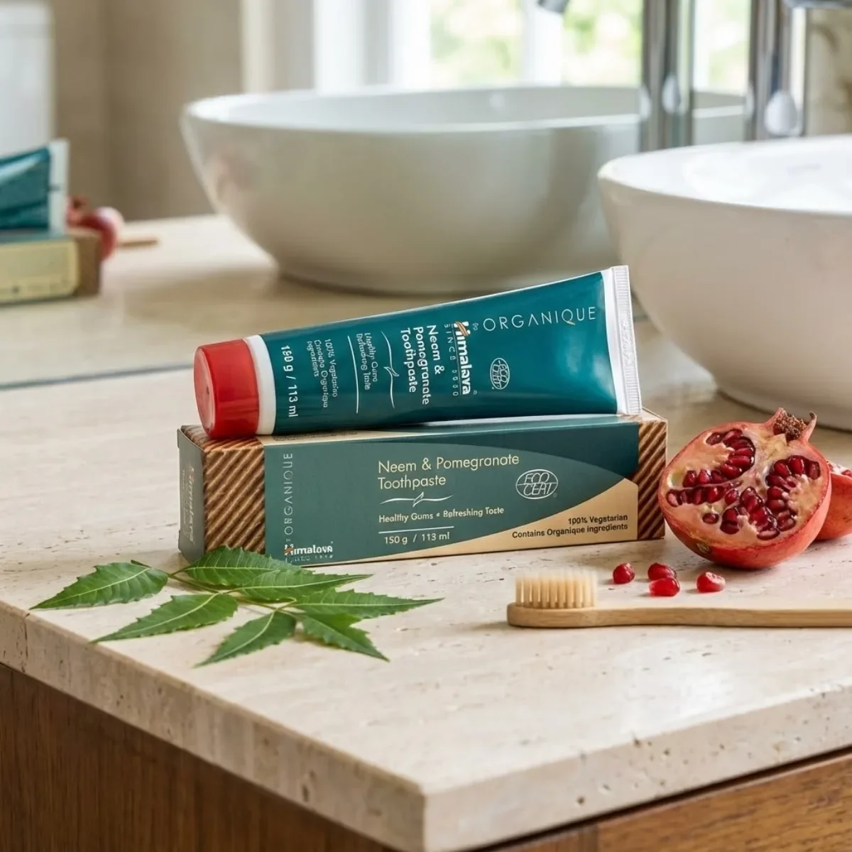 Pasta de dinți ayurvedică cu neem și rodie este o soluție naturală certificată pentru cei care vor să protejeze gingiile sensibile și să prevină placa bacteriană fără expunere la fluor, SLS sau conservanți sintetici controversați din pastele convenționale.