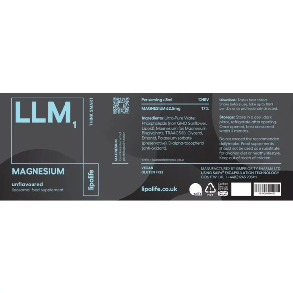 Magneziu lipozomal 250ml Lipolife LLM1 este un produs vegan, fara gluten, fara lactoza, fara zahar si fara OMG. Contine doar urme de alcool si soia, fiind potrivit pentru persoanele cu sensibilitati alimentare. Se recomanda administrarea a 5 ml sau 10 ml pe zi, diluati in apa sau suc natural. Un flacon de 250 ml asigura 50 de portii pentru 50 de zile. Produsul este importat din Anglia si are un capac de dozare practic.